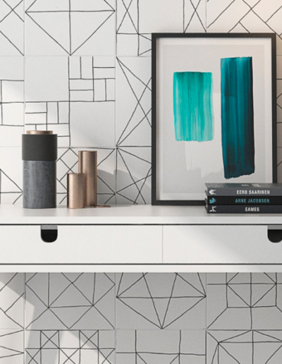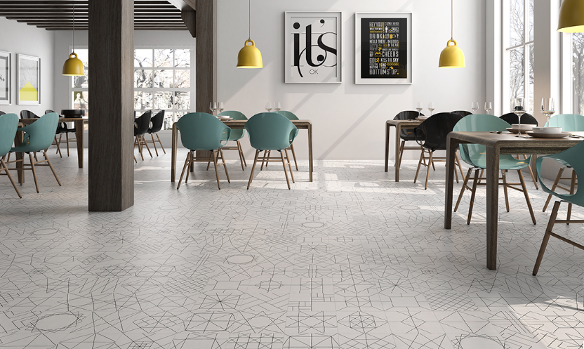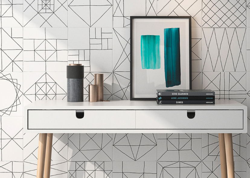 Les carreaux de porcelaine Pawn de Geotiles font partie de leur gamme décor.