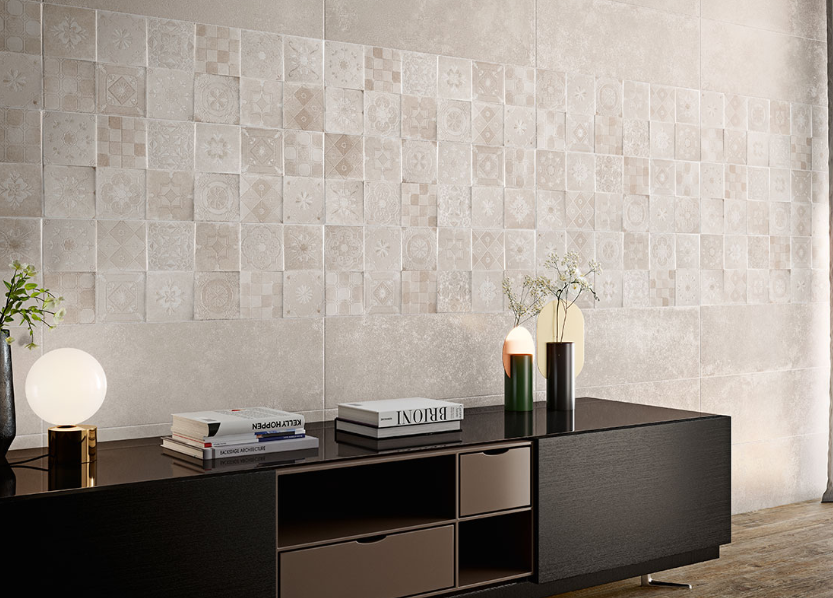 Une collection où la neutralité du ciment est fusionnée avec la pierre naturelle.