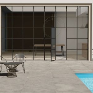 C’est un carrelage extérieur qui se pose sur plot ou à même le sol.
